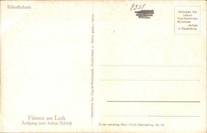 11471267 Kuenstlerkarte Nr. 791 Füssen am Lech Schloss KatCode 22240000003200