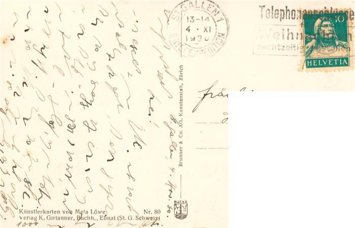 73950632 alte Postkarte Kuenstlerkarte Nr.80 Meta Loewe Verlag K. Girtanner Maedchen postalisch gelaufen Erhaltung siehe scans [SanaeD93] KatCode: 22240000003200