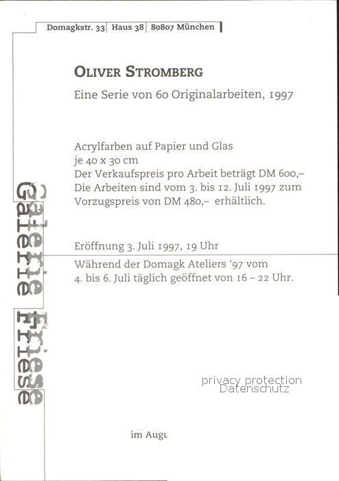 Kuenstlerkarte Oliver Stromberg Acrylfarben Papier und Glas postalisch nicht gelaufen Erhaltung siehe scans
