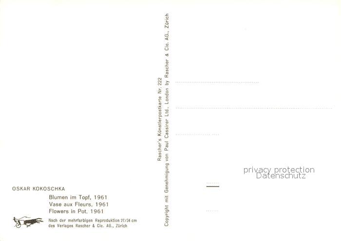 Kuenstlerkarte Oskar Kokoschka Blumen im Topf postalisch nicht gelaufen Erhaltung siehe scans [PaolaD17]