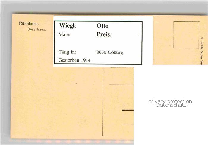 42778976 Kuenstlerkarte Otto Wiegk Nürnberg Dürerhaus KatCode 22240000003200