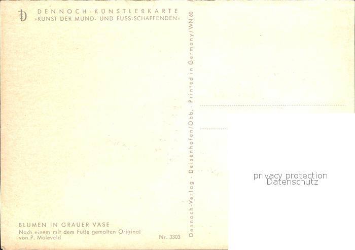 Kuenstlerkarte P. Moleveld Blumen in grauer Vase Dennoch-Kuenstlerkarte Nr. 3303 postalisch nicht gelaufen Erhaltung siehe scans