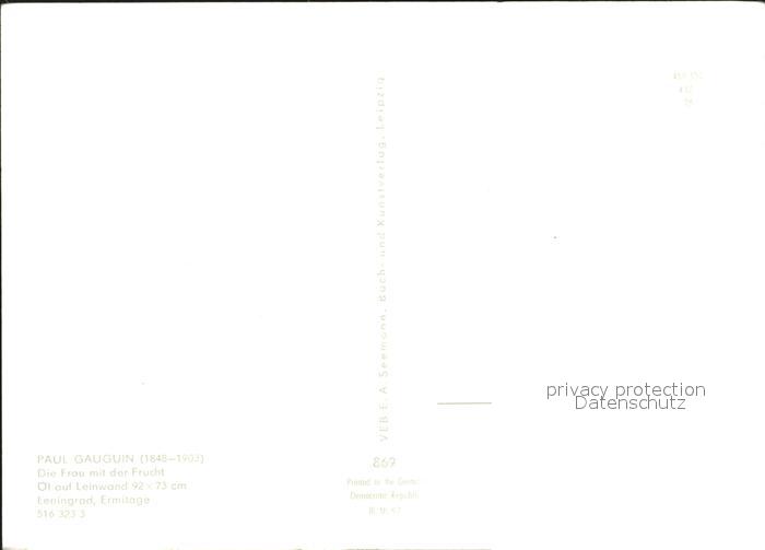 Kuenstlerkarte Paul Gauguin Die Frau mit der Frucht postalisch nicht gelaufen Erhaltung siehe scans