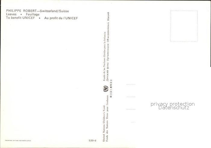 Kuenstlerkarte Philippe Robert Leaves Feuillage UNICEF