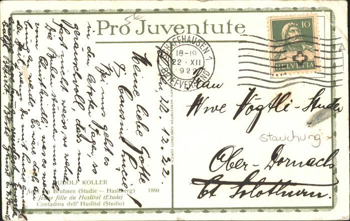 Kuenstlerkarte Rudolf Koller Änni am Brunnen Hasliberg