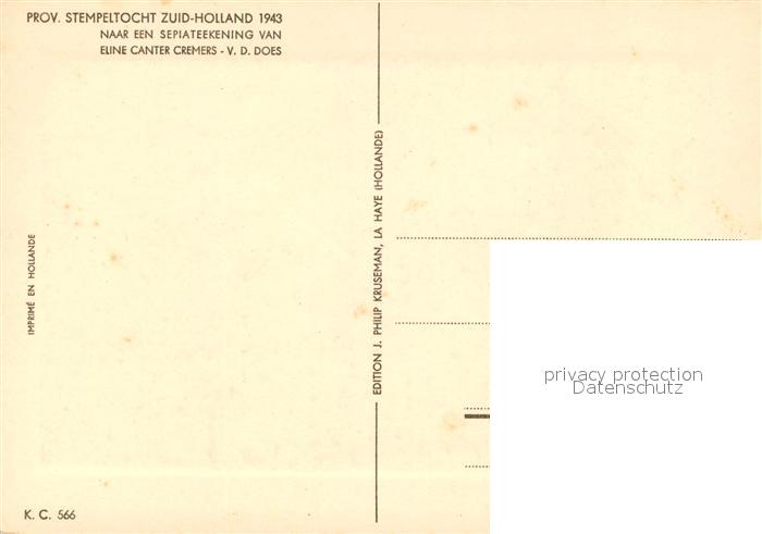 73481724 Kuenstlerkarte Sepiateekening van Eline Canter Cremers Oudewater Prov. Stempeltocht Zuid Holland KatCode 22240000003200