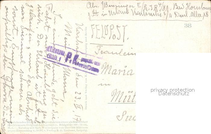 alte Postkarte Kuenstlerkarte Strich Chapell Lieb Heimatland Ade Nr. 38 postalisch gelaufen Feldpost Erhaltung siehe scans
