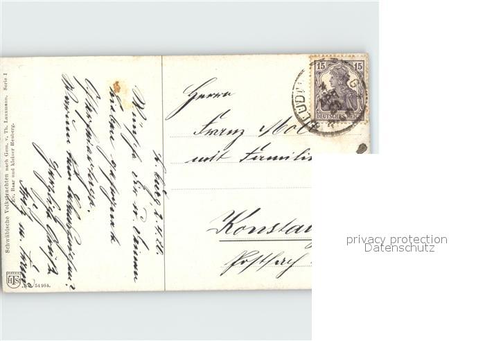 alte Postkarte Kuenstlerkarte Th. Lauxmann Volkstrachten Schwaben Tanz postalisch gelaufen Erhaltung siehe scans