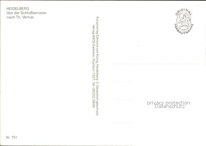 Kuenstlerkarte Theodor Verhas Heidelberg von der Schlossterrasse postalisch nicht gelaufen Erhaltung siehe scans
