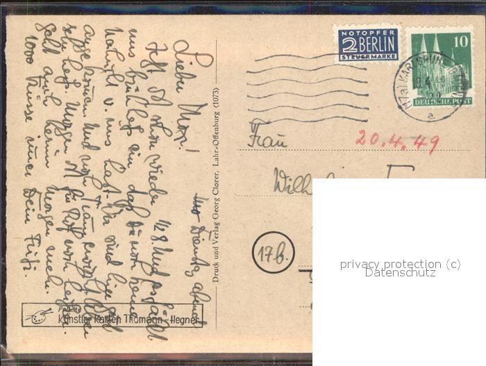11537895 Kuenstlerkarte Thomann Hegner Bub Kirschen KatCode 22240000003200