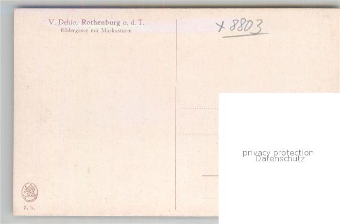 43020647 Kuenstlerkarte V. Dehio Rothenburg Tauber Rödergasse Markusturm KatCode 22240000003200