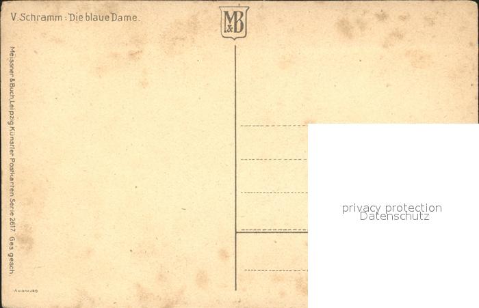 Kuenstlerkarte V. Schramm Die blaue Dame postalisch nicht gelaufen Erhaltung siehe scans