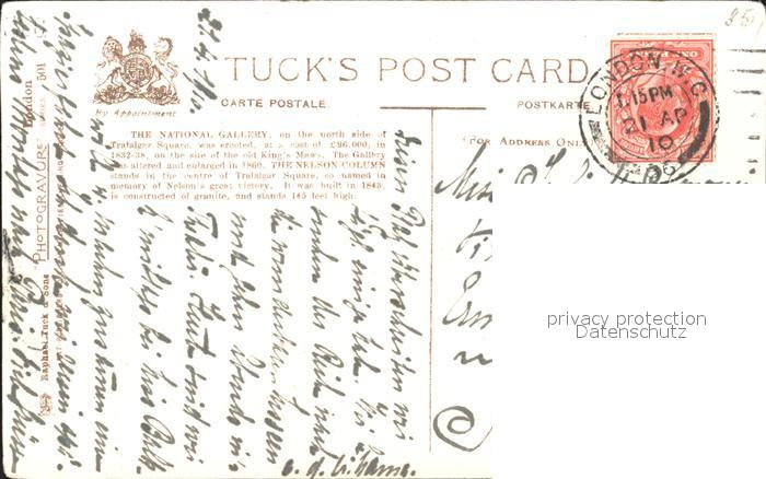11777986 Kuenstlerkarte W. Matthison National Gallery Nelson Monument Trafalgar Square KatCode 22240000003200