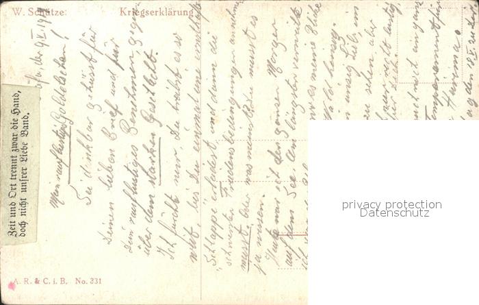 Kuenstlerkarte W. Schuetze Kriegserklaerung Kinder Hund Stall Heu Katzen postalisch nicht gelaufen Erhaltung siehe scans
