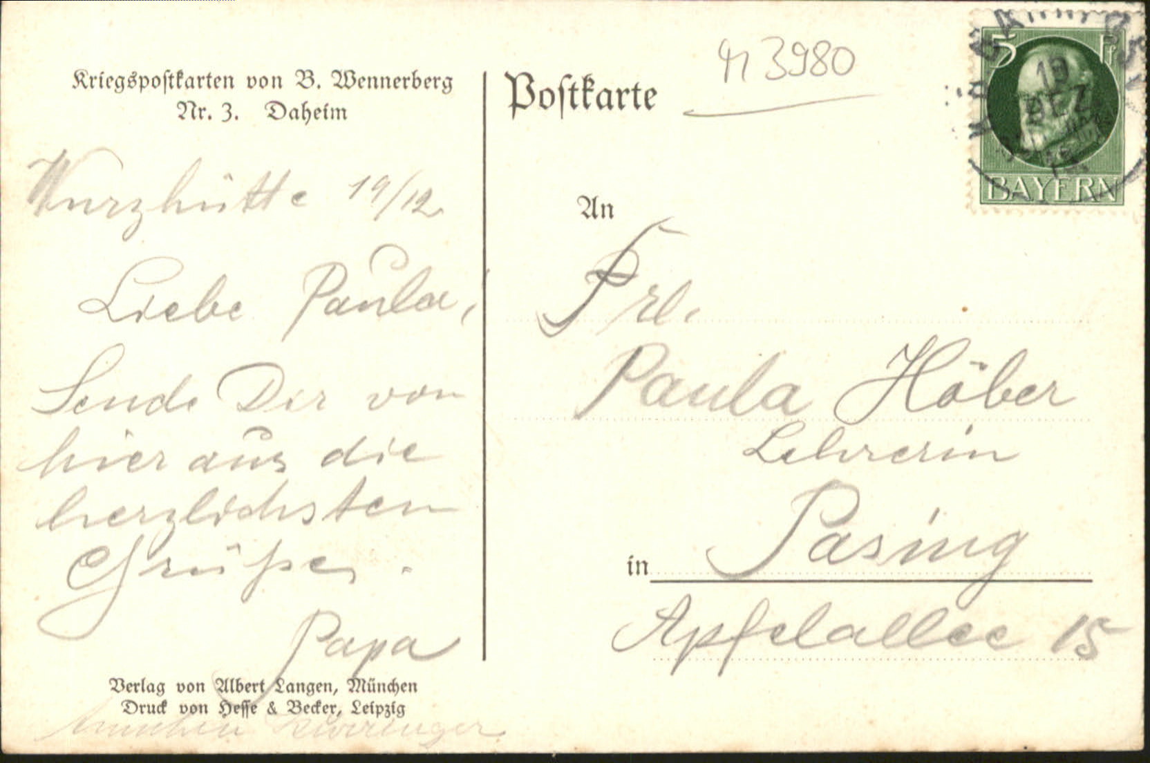 11023482 Kuenstlerkarte Wennerberg Nr. 3 Daheim KatCode 22240000003200