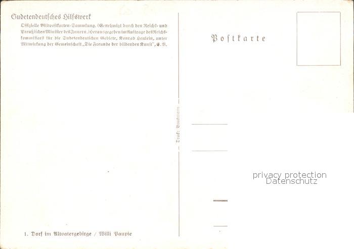 Kuenstlerkarte Willi Paupie Dorf Altvatergebirge Sudetendeutsches Hilfswerk postalisch nicht gelaufen Erhaltung siehe scans