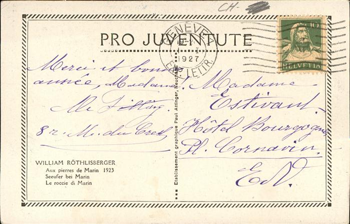 Kuenstlerkarte William Röthlisberger Seeufer Marin