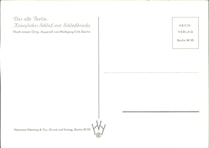 11471297 Kuenstlerkarte Wolfgang Tritt Berlin Königliches Schloss Schloßbrücke KatCode 22240000003200