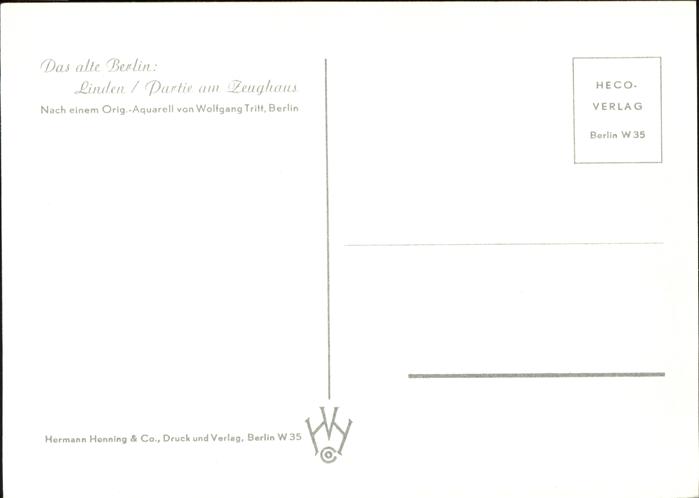 11471305 Kuenstlerkarte Wolfgang Tritt Berlin Linden/Partie am Zeughaus KatCode 22240000003200