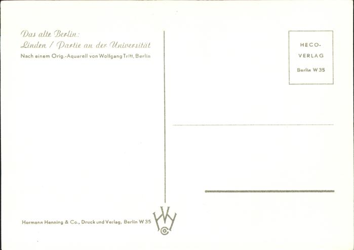 11471289 Kuenstlerkarte Wolfgang Tritt Berlin Linden/Universität KatCode 22240000003200