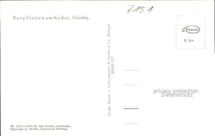 41586631 Kuenzelsau Burg Stetten am Kocher Fliegeraufnahme Straehle Bild Nr. 5105 postalisch nicht gelaufen Erhaltung siehe scans Alte Ansichtskarte Postkarte hz_F Katcode 11110008126046