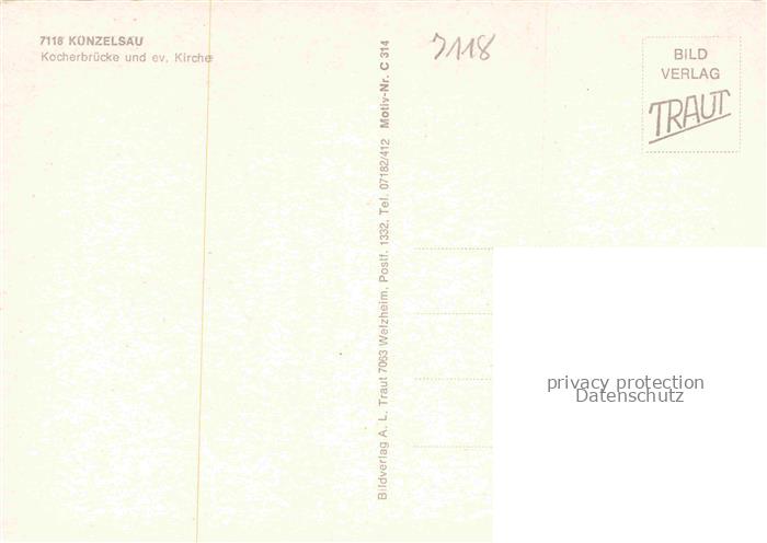 74054148 Kuenzelsau Kocherbruecke und evangelische Kirche postalisch nicht gelaufen Erhaltung siehe scans [FriedD77] KatCode: 11110008126046