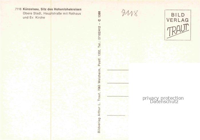 74054152 Kuenzelsau Obere Stadt Hauptstrasse Rathaus und ev. Kirche postalisch nicht gelaufen Erhaltung siehe scans [FriedD77] KatCode: 11110008126046