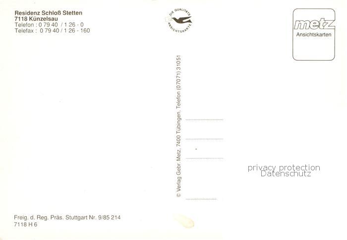 73841131 Kuenzelsau Residenz Schloss Stetten Fliegeraufnahme postalisch nicht gelaufen Erhaltung siehe scans [WerneD78] KatCode: 11110008126046