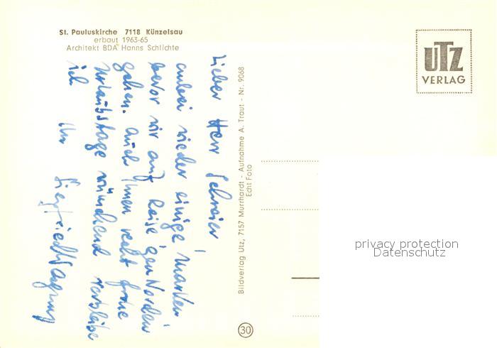 73164224 Kuenzelsau St Pauluskirche Architekt BDA Hanns Schlichte erbaut 1963-65 postalisch nicht gelaufen Erhaltung siehe scans [FriedD77] KatCode: 11110008126046