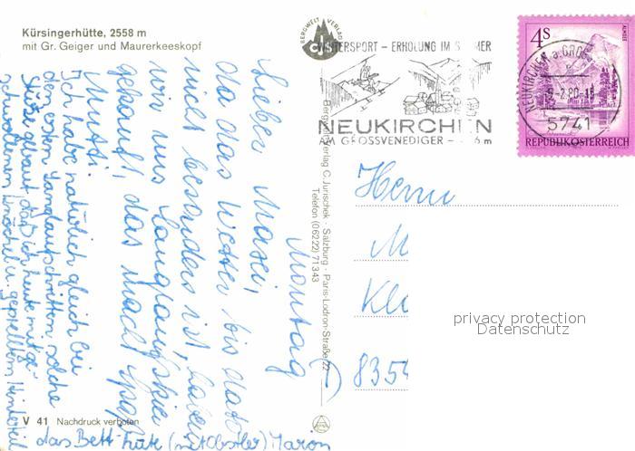 72653566 alte Postkarte Kuersingerhuette mit Gr Geiger und Maurerkeeskopf postalisch gelaufen Erhaltung siehe scans [WerneD78] KatCode: 11390322050614