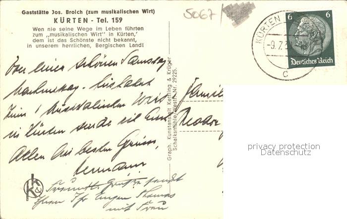 31841236 old postcard Kuerten Gaststaette Zum musikalischen Wirt postalisch gelaufen Erhaltung siehe scans KatCode: 14140460000000