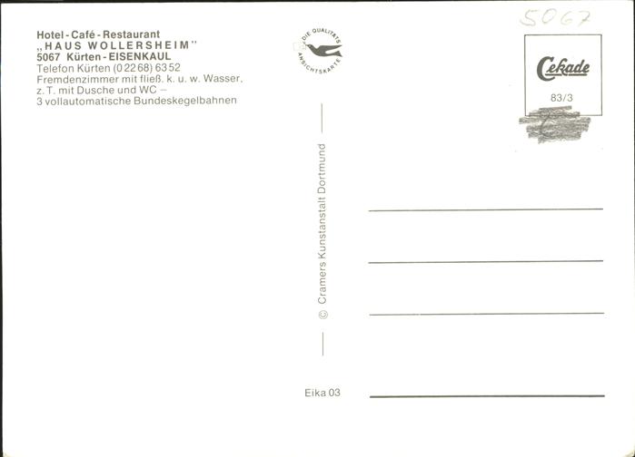 41305856 Kuerten Hotel Restaurant Wollersheim postalisch nicht gelaufen gute Erhaltung KatCode: 14140460000000