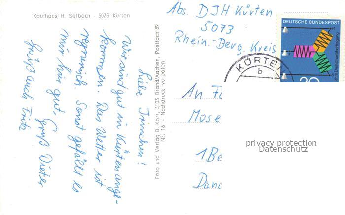 74099295 alte Postkarte Kuerten KoeLN Panorama postalisch gelaufen Erhaltung siehe scans [FriedD77] KatCode: 11110005315000