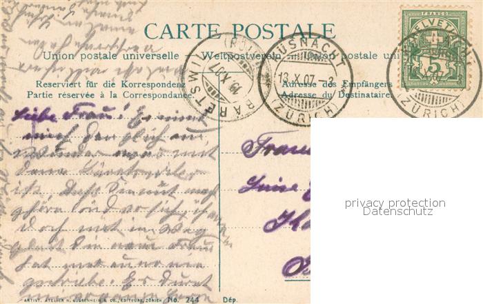 13745747 alte Postkarte Kuesnacht Zuerichsee Teilansicht postalisch gelaufen Erhaltung siehe scans [LiesaD40] KatCode: 11470260895362
