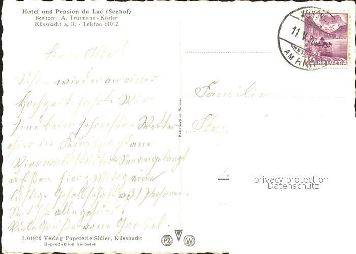 11643177 alte Postkarte Kuessnacht Hotel Pension du Lax Seehof Hohle Gasse Tellskapelle Gedaechnitskapelle Koenigin Astrid postalisch gelaufen Erhaltung siehe scans KatCode: 11470170490454