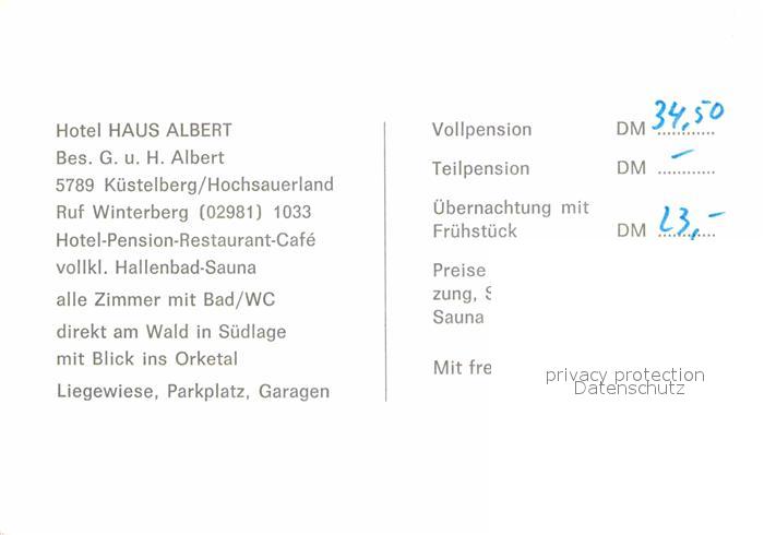 72902942 Kuestelberg Hotel Haus Albert Hallenbad postalisch nicht gelaufen Werbekarte (keine Postkarte) Erhaltung siehe scans [FriedD77] KatCode: 11110005958028