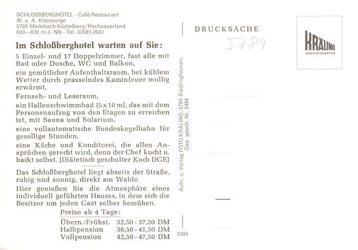 73912276 Kuestelberg Schlossberghotel postalisch nicht gelaufen Erhaltung siehe scans [WerneD78] KatCode: 11110005958028