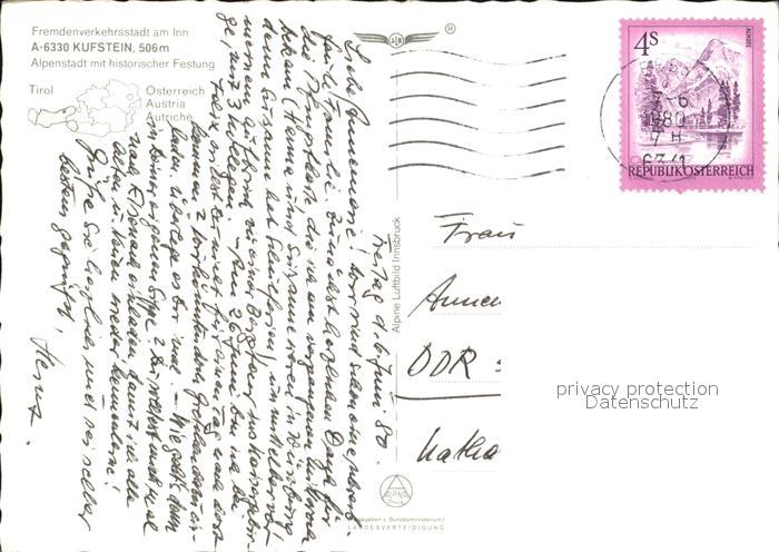 72500332 alte Postkarte Kufstein Tirol Alpenstadt Festung Luftaufnahme postalisch gelaufen Erhaltung siehe scans KatCode: 11390335070513