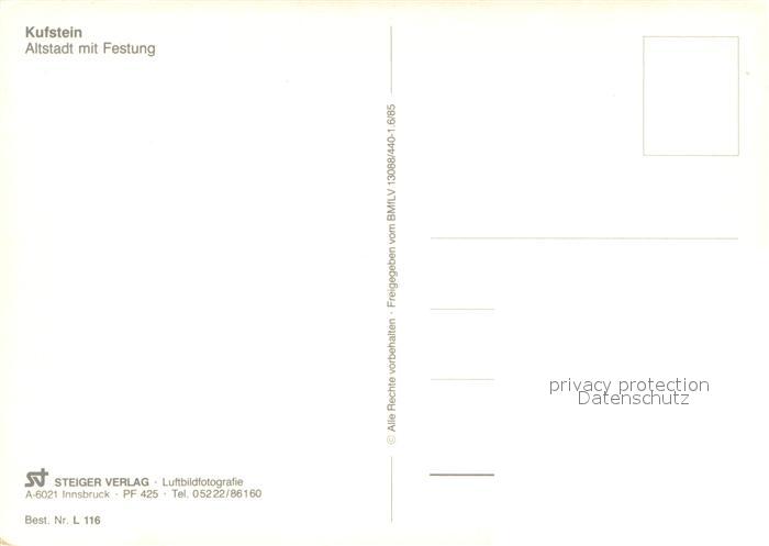 73657377 Kufstein Tirol Altstadt mit Festung Fliegeraufnahme postalisch nicht gelaufen Erhaltung siehe scans [WerneD78] KatCode: 11390335070513