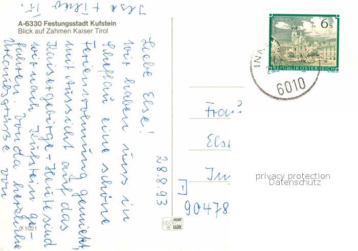 72760949 alte Postkarte Kufstein Tirol Ansicht mit Schloss Festungsstadt Blick auf Zahmen Kaiser postalisch gelaufen Erhaltung siehe scans [FriedD77] KatCode: 11390335070513