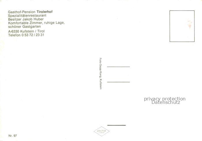 74028402 KUFSTEIN Tirol AT Gasthof Pension Tirolerhof postalisch nicht gelaufen Erhaltung siehe scans [FriedD77] KatCode: 11390335070513