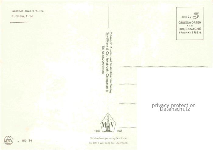 74039107 KUFSTEIN Tirol AT Gasthof Theaterhuette Waldpension postalisch nicht gelaufen Erhaltung siehe scans [FriedD77] KatCode: 11390335070513