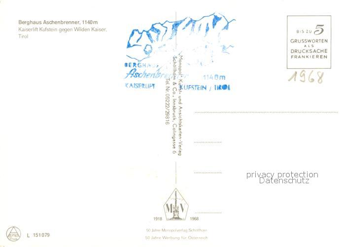 73205070 Kufstein Tirol Berghaus Aschenbrenner postalisch nicht gelaufen Erhaltung siehe scans [NatalD47] KatCode: 11390335070513