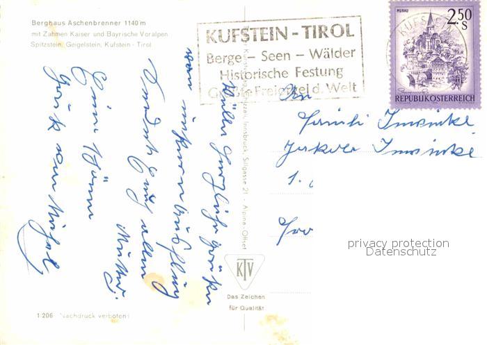 72619449 alte Postkarte Kufstein Tirol Berghaus Aschenbrenner am Kaiserlift mit Zahmen Kaiser postalisch gelaufen Erhaltung siehe scans [FriedD77] KatCode: 11390335070513