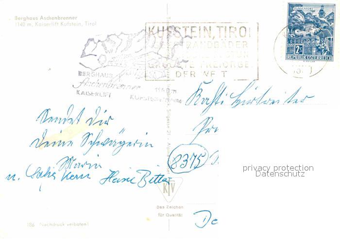 72619426 alte Postkarte Kufstein Tirol Berghaus Aschenbrenner am Kaiserlift postalisch gelaufen Erhaltung siehe scans [FriedD77] KatCode: 11390335070513