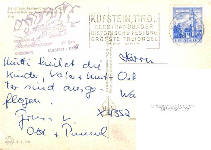 72849674 alte Postkarte Kufstein Tirol Berghaus Aschenbrenner Kaiserlift Wilhelm Kaiser postalisch gelaufen Erhaltung siehe scans [KathaD81] KatCode: 11390335070513