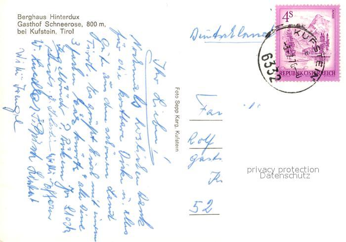 13171026 alte Postkarte Kufstein Tirol Berghaus Hinterdux Gasthof Schneerose postalisch gelaufen Erhaltung siehe scans [KathaD81] KatCode: 11390335070513