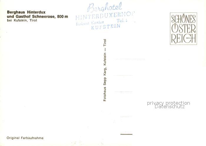 13317087 Kufstein Tirol Berghaus Hinterdux und Gasthof Schneerose postalisch nicht gelaufen Erhaltung siehe scans [WerneD78] KatCode: 11390335070513