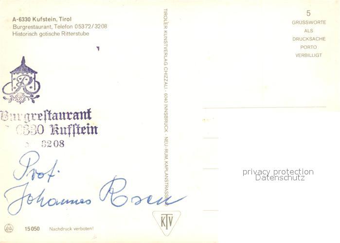 73364317 Kufstein Tirol Burgrestaurant Historisch gotische Ritterstube postalisch nicht gelaufen Erhaltung siehe scans [FriedD77] KatCode: 11390335070513
