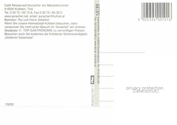 72662042 Kufstein Tirol Cafe Auracher postalisch nicht gelaufen Erhaltung siehe scans [AndreD76] KatCode: 11390335070513